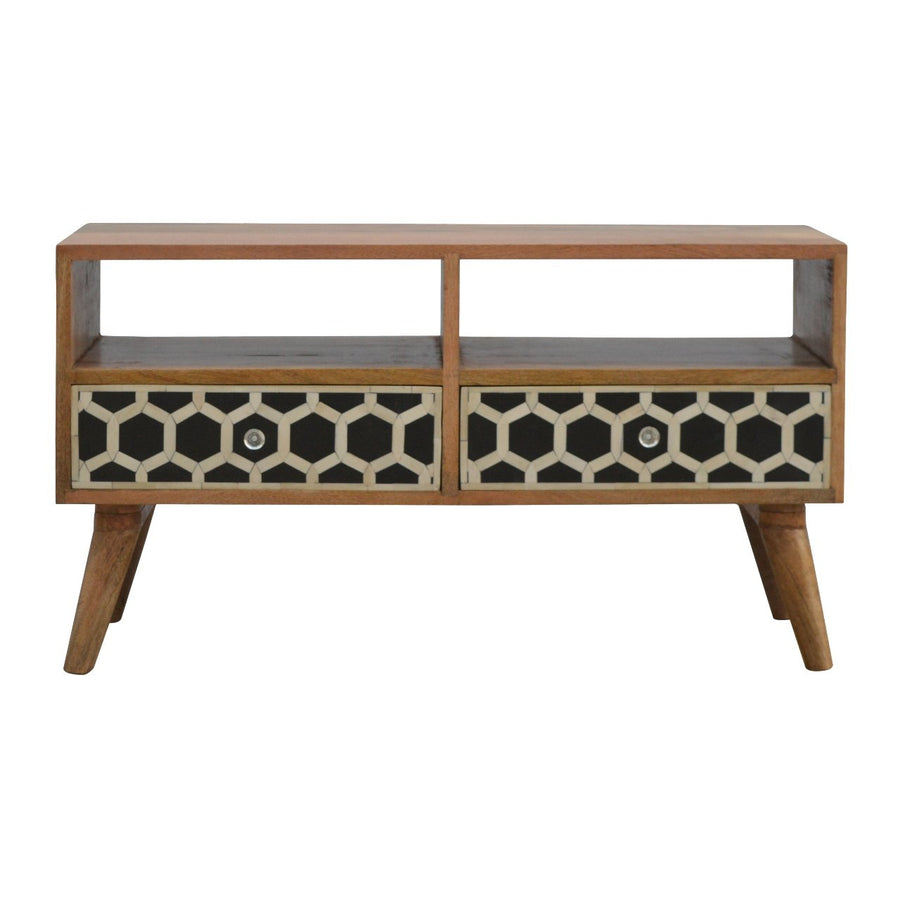 Bone Inlay Tripod Stool With Honey Caramel Finish