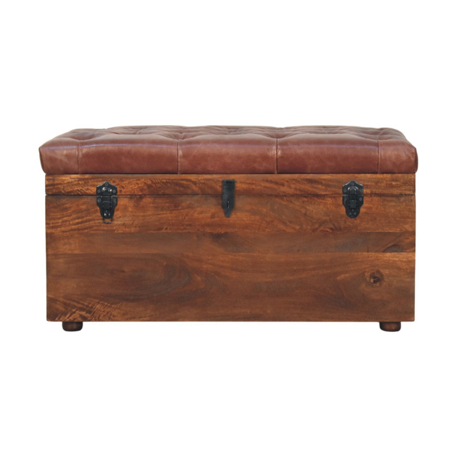 Buffalo Ash Black Leather Ottoman with Castor Legs