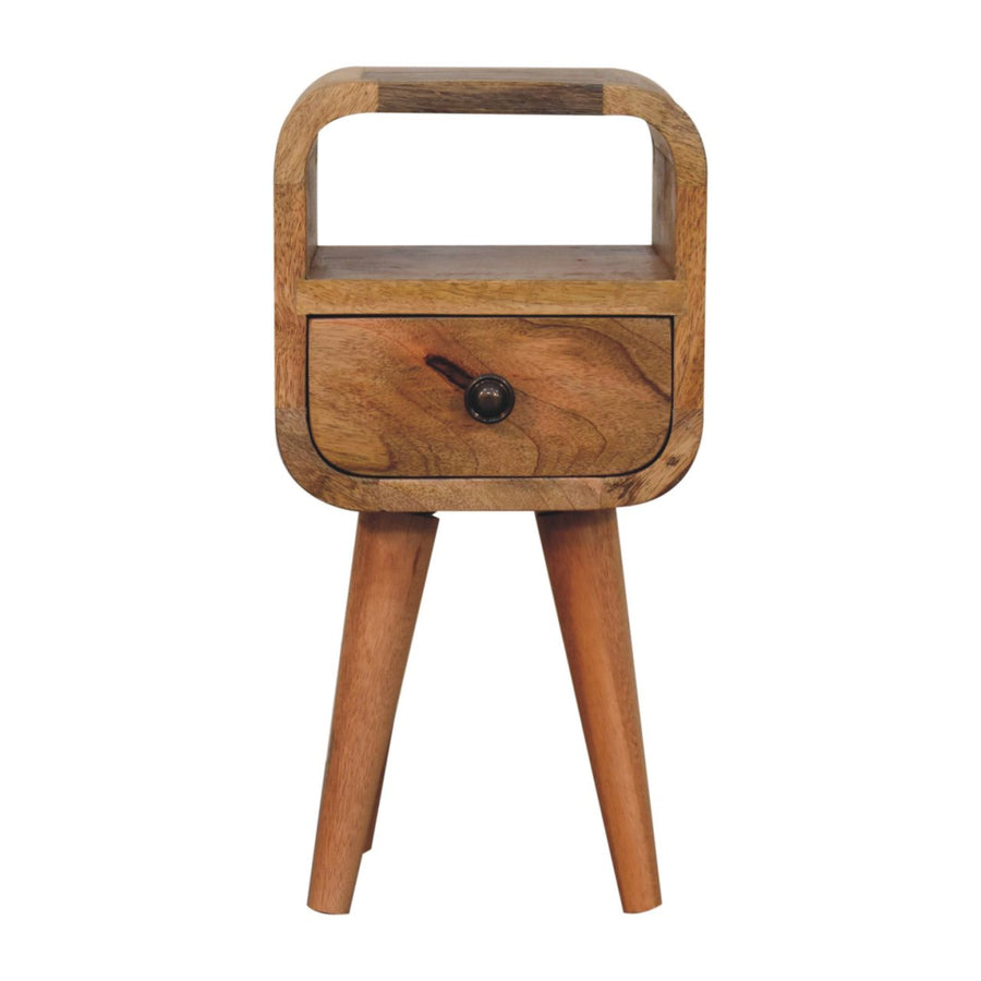 Mini Curved California Walnut Wall Mounted Bedside with Open Slot