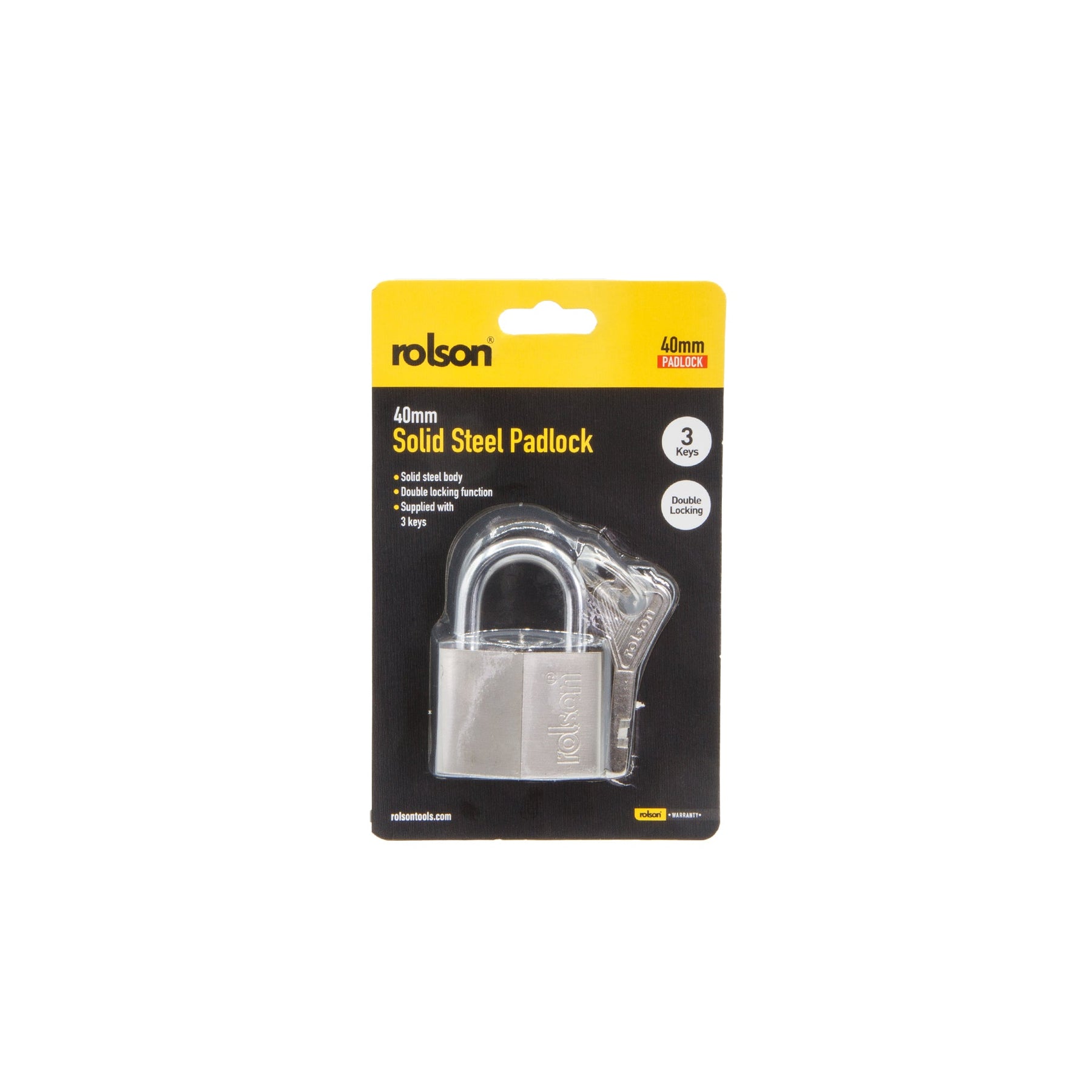 40mm Solid Steel Padlock - Solid steel body with double locking function and supplied with four keys.