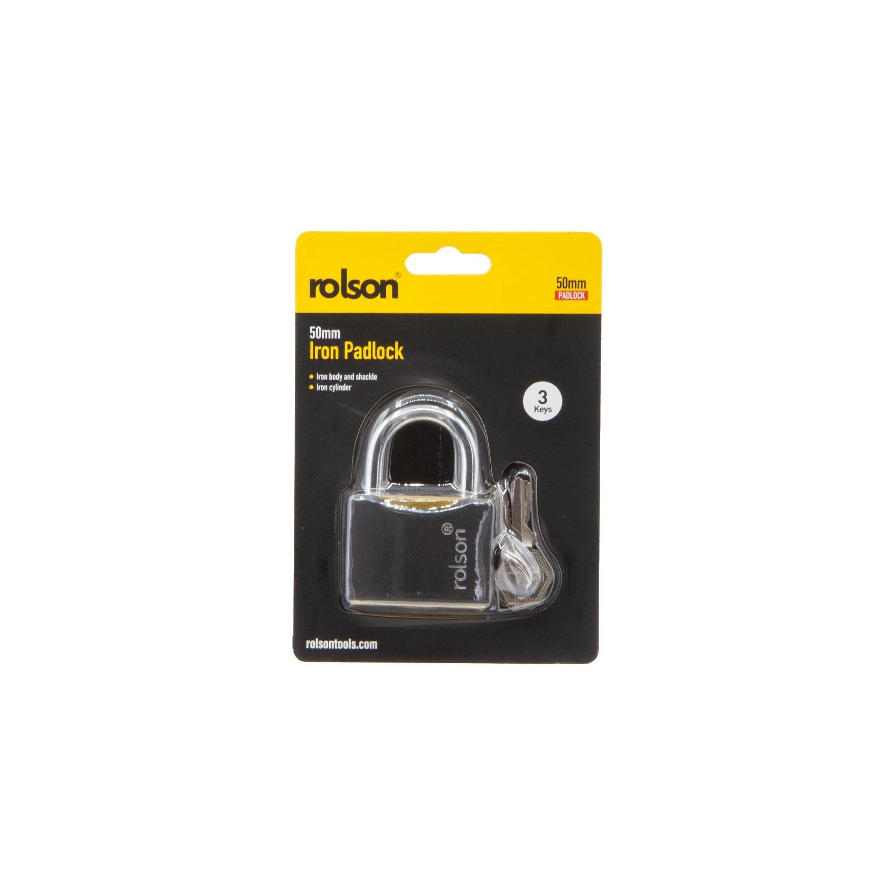 50mm Padlock - Steel body and shackle with brass cylinder. Dimensions 75 x 51 x 20mm. Supplied with three keys