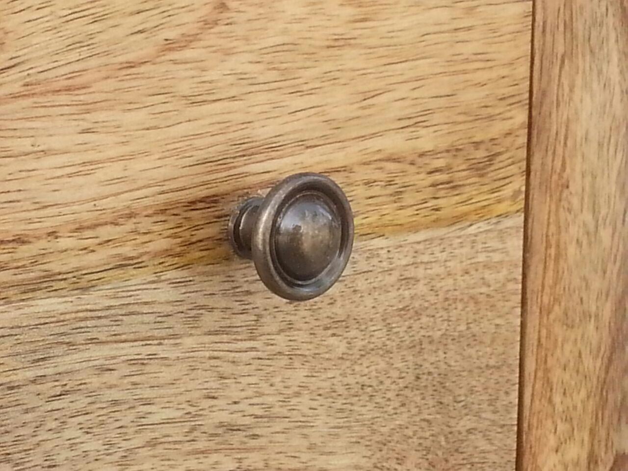 This stunning and practical mini chest features 9 drawers and has been constructed from 100% solid mango wood in an oak-ish finish giving it a truly rustic and romantic feel. It is an essential piece of furniture for the home giving you space to store clothing as well as providing a surface for all your bits and pieces. Every piece of furniture is individually handcrafted and includes swing care tickets explaining the cautions and aftercare instructions. Height: 75 cm, Width: 62 cm, Depth: 32 cm Carton Height: 85.0 cm, Carton Width: 72.0 cm, Carton Depth: 42.0 cm