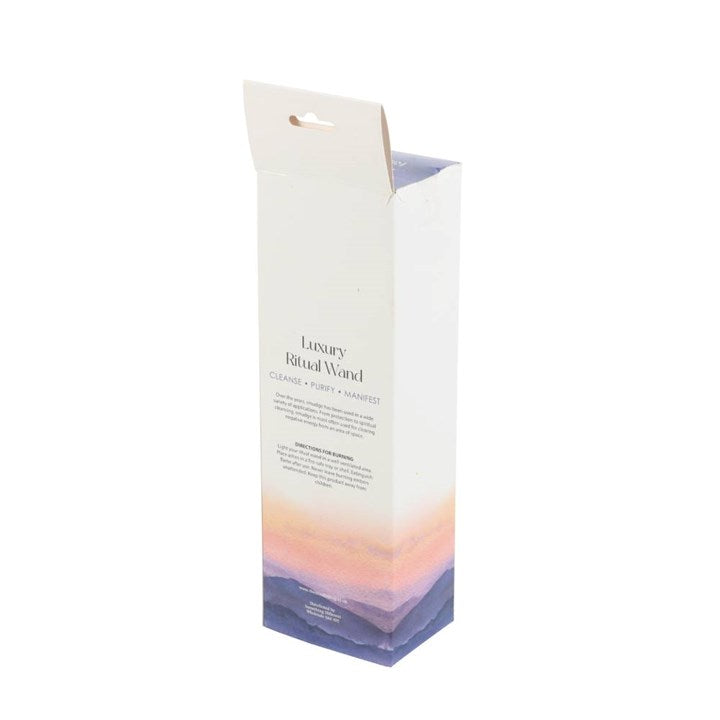 The act of ‘smudging’ is a traditional Native American practice used to cleanse and purify spaces using the smoke of burning sacred herbs. Sustainably sourced and made in the USA, this beautiful ritual wand features fragrant rosemary, palo santo, orange peels, dried flowers and a raw quartz crystal thoughtfully handtied into a tight bundle for burning and display. To use, light the end of the sage stick and allow to smoulder, place into a heat-resistant bowl or shell and gently disperse the smoke throughout the area to dispel negative energies. Fully extinguish after use and keep away from pets and children.