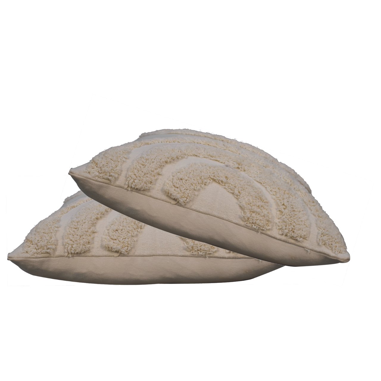 Just like our single cushions our cushion set features 2 white cushions, which have a lovely soft and fluffy surface upholstered in a lush cotton fabric. Perfect for cuddling up with on cozy nights on a 2 or 3-seater sofa. .This product is handcrafted individually and as every piece is unique please do expect variations in finish, texture, size and should not be considered as a defect. Height: 15 cm, Width: 45 cm, Depth: 45 cm Carton Height: 32 cm, Carton Width: 47 cm, Carton Depth: 47 cm