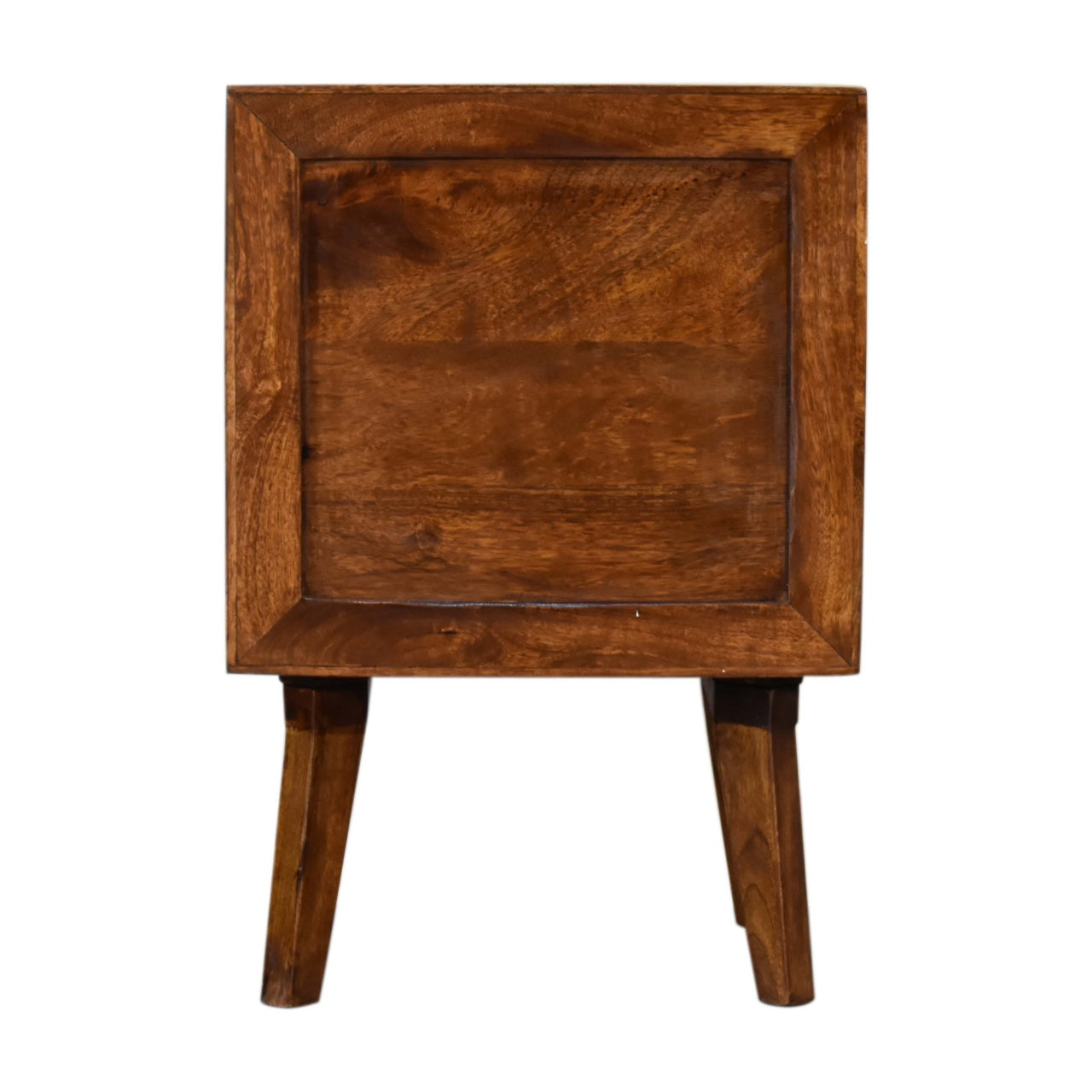 This stunning Arlo Bedside has been constructed from 100% solid mango wood and has a smooth chestnut finish. The main feature of this piece is the carved cutout door front which gives this piece its individual retro character, not forgetting a shelf inside for storage. It also features a shiny brass knob and stands on 4 nordic style legs. Height: 57 cm, Width: 40 cm, Depth: 35 cm Carton Height: 45.0 cm, Carton Width: 50.0 cm, Carton Depth: 45.0 cm