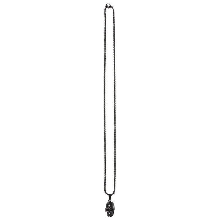 Blending gothic charm and modern style this black stainless steel skull pendant necklace is a striking accesory. Perfect for those who love to make a statement the necklace design combines the edgy appeal of the skulls with the sleekness of black stainless steel. Jewellery is nickel free.