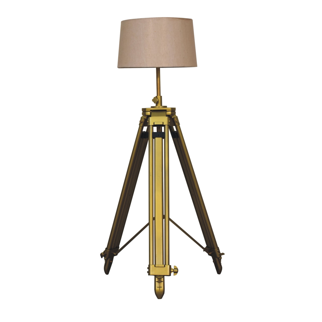Our double-fold tripod lampshade is stylishly designed, crafted and finished in a brass plated finish, to make a simple yet effective addition to your living space. This modern tripod floor lamp is a gorgeous addition to living room, hallway or bedroom and perfect for illuminating any dark corners. This product is handcrafted individually and as every piece is unique please do expect variations in finish, texture, size and should not be considered as a defect. Height: 122 cm, Width: 56 cm, Depth: 56 cm Carton Height: 50 cm, Carton Width: 95 cm, Carton Depth: 42 cm