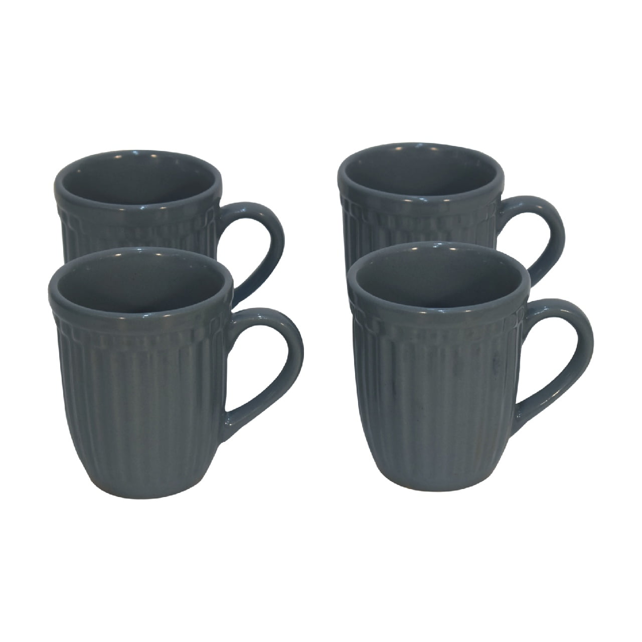 With a contemporary ribbed design, this mug set of 4 is offered in a charcoal grey colour and also available in a range of soft colours. Featuring a glossy finish, and a sturdy handle, it is the perfect choice for enjoying your favourite hot drink. Height: 10 cm, Width: 8.5 cm, Depth: 8.5 cm Carton Height: 18.0 cm, Carton Width: 25.0 cm, Carton Depth: 25.0 cm
