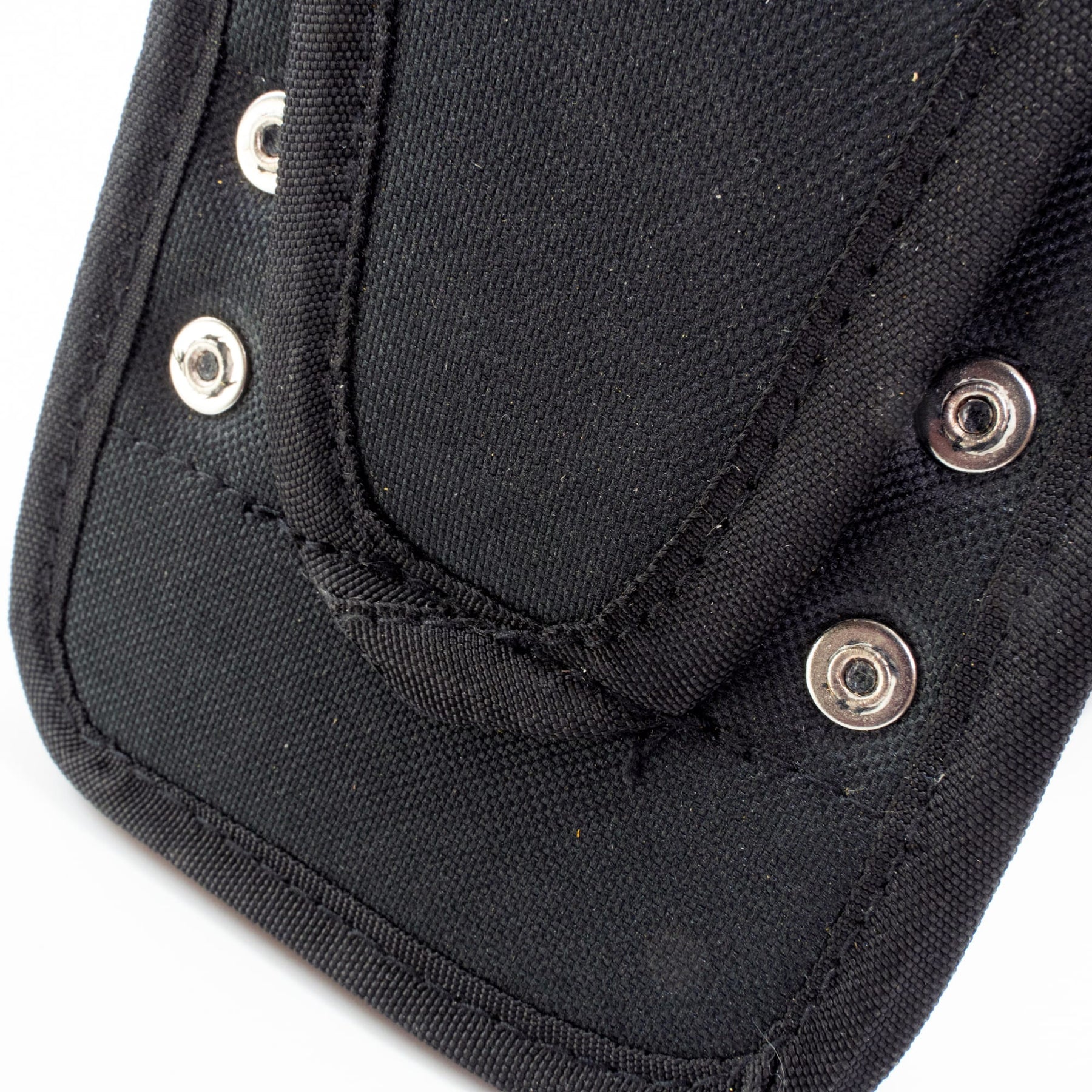 Tool holder manufactured from leather & nylon with belt loop suitable up to 100mm width. Double riveted joint to steel holder. It is in a fixed position. Durable and long lasting with superior construction to hold heavy tools and is ideal hammers of all types.