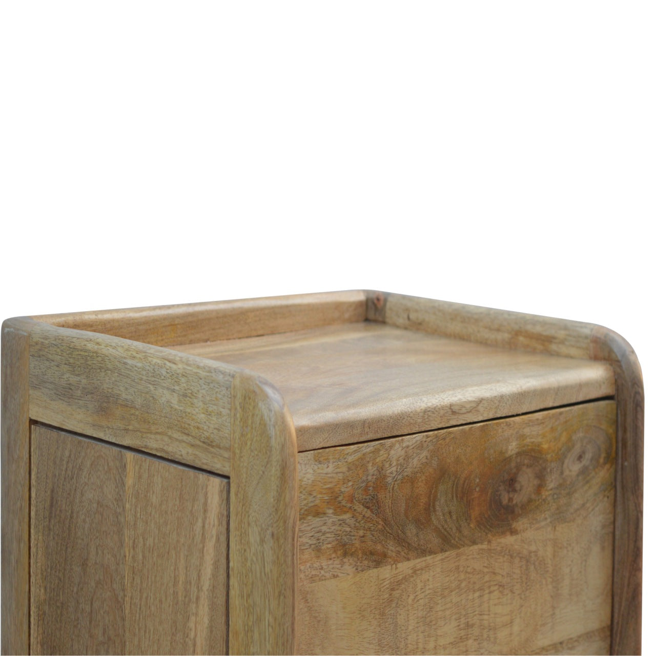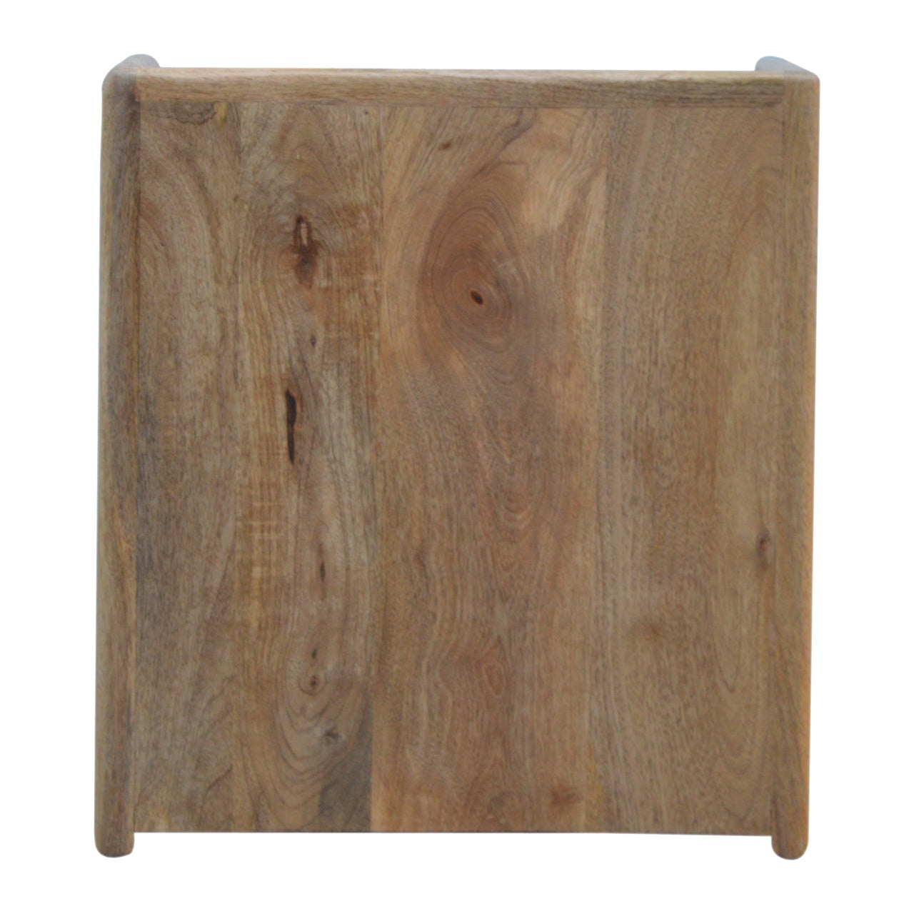 This gallery back beside has been constructed from 100% solid mango wood in an oak-ish finish finished with a coat of lacquer meaning it is durable and can withstand years of use. It features a cut out handle enabling a easy opening into 2 of the drawers which creates a clean and contemporary finish. Height: 50 cm, Width: 45 cm, Depth: 35 cm Carton Height: 60.0 cm, Carton Width: 50.0 cm, Carton Depth: 40.0 cm