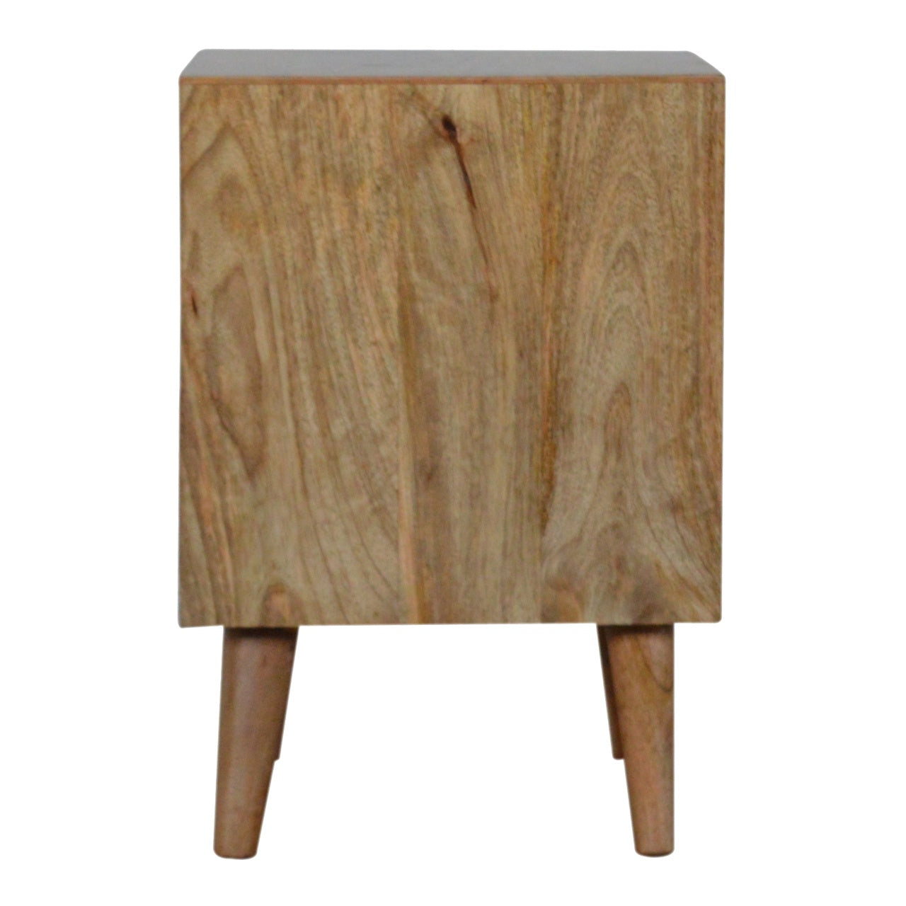 This bedside offers both style and storage space with its simple yet stylish design. It has been constructed from 100% solid mango wood in an oak-ish finish and features one white and one grey hand painted drawer. It has open slots which can be used for opening and closing the drawer and it stands on 4 Nordic style feet making it the perfect addition for the bedroom. Height: 50 cm, Width: 45 cm, Depth: 35 cm Carton Height: 45.0 cm, Carton Width: 55.0 cm, Carton Depth: 47.0 cm