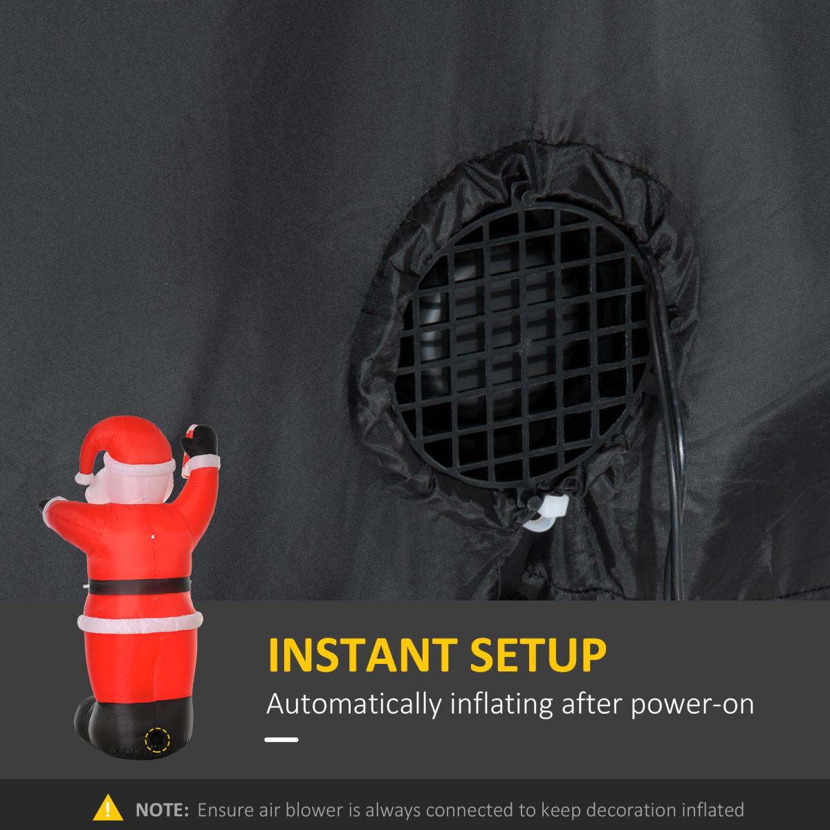Inflatable Christmas Santa Claus Air Blown Decoration Yard" Description: - Inflatable Santa holding a candy cane - Made with durable and sturdy polyester cloth - Equipped with 2 sets of LED lights for nighttime illumination - Easy to inflate and deflate for storage and display - Water-proof material suitable for any weather conditions - Cloth has passed the EN14362-2 and fire test - Fan certified with ROHS and CE - Transformer certified to BS standards