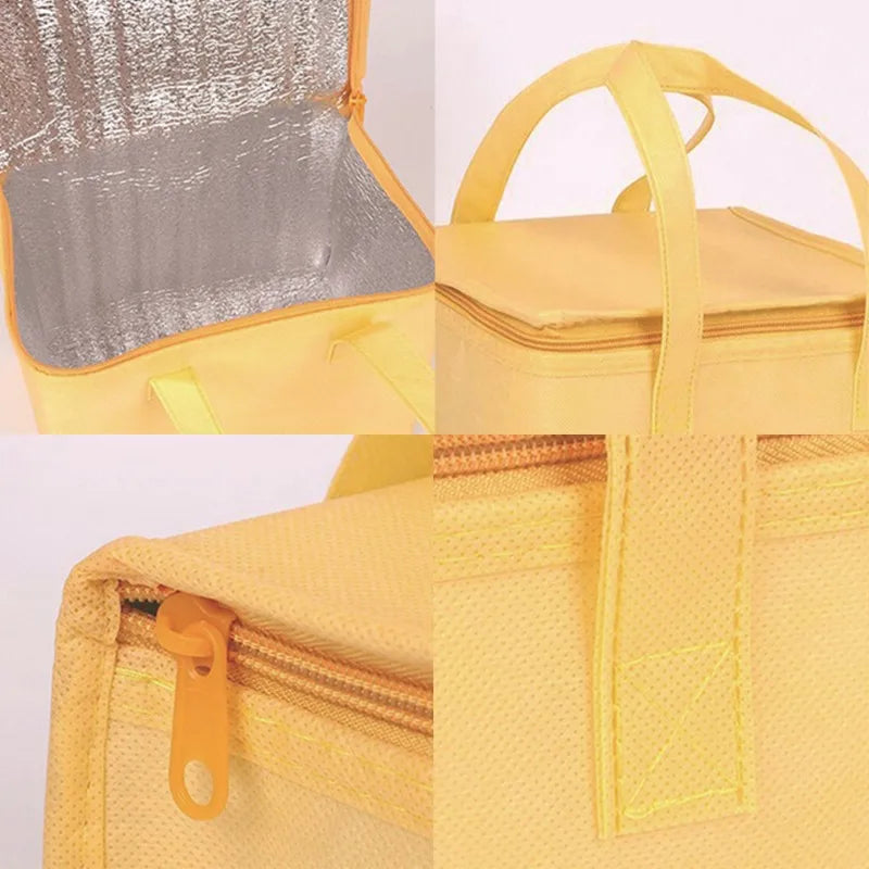 Introducing our premium Insulated Cooler Bag, meticulously designed for food delivery, picnics, and packed lunches. Made from high-quality materials such as aluminium foil, pearl wool, and durable oxford fabric, this bag ensures your food stays fresh and at the desired temperature for hours.