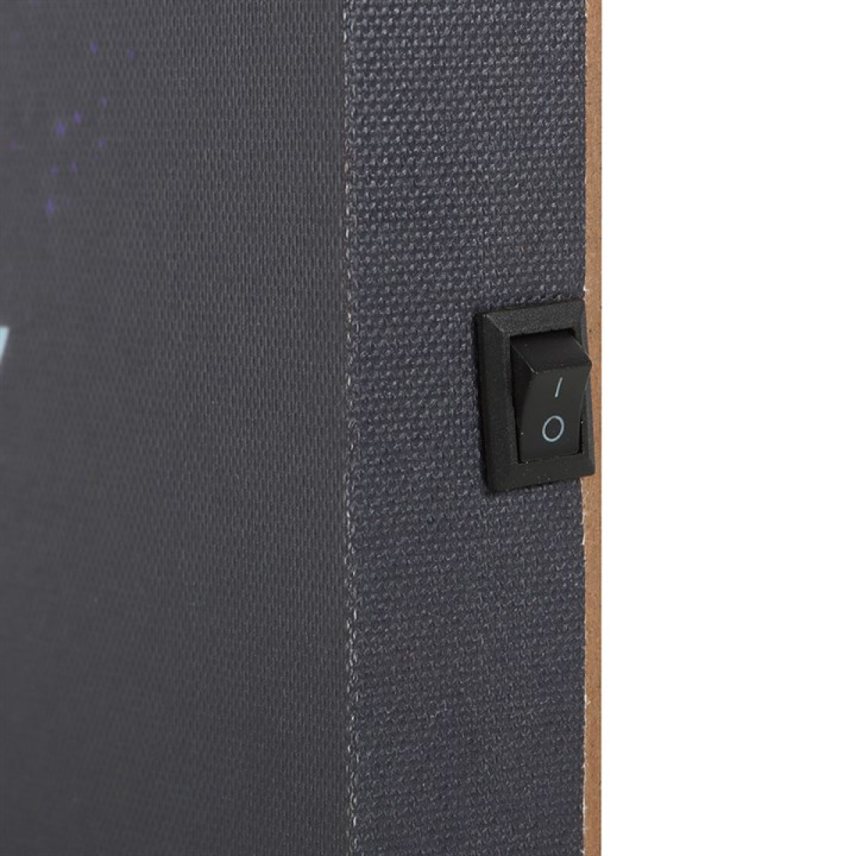Add a touch of magic to your space with this 30x30cm light-up wall canvas. Features a mystical moth and plant design with embedded LED lights to create a mesmerizing glow. Please note that the switch is located on the side of the canvas and may be slightly obscured by the packaging upon delivery. Requires 2 x AA batteries. Designed by Something Different Wholesale and part of the Night Flight range of mystical owl gifts and home decor.