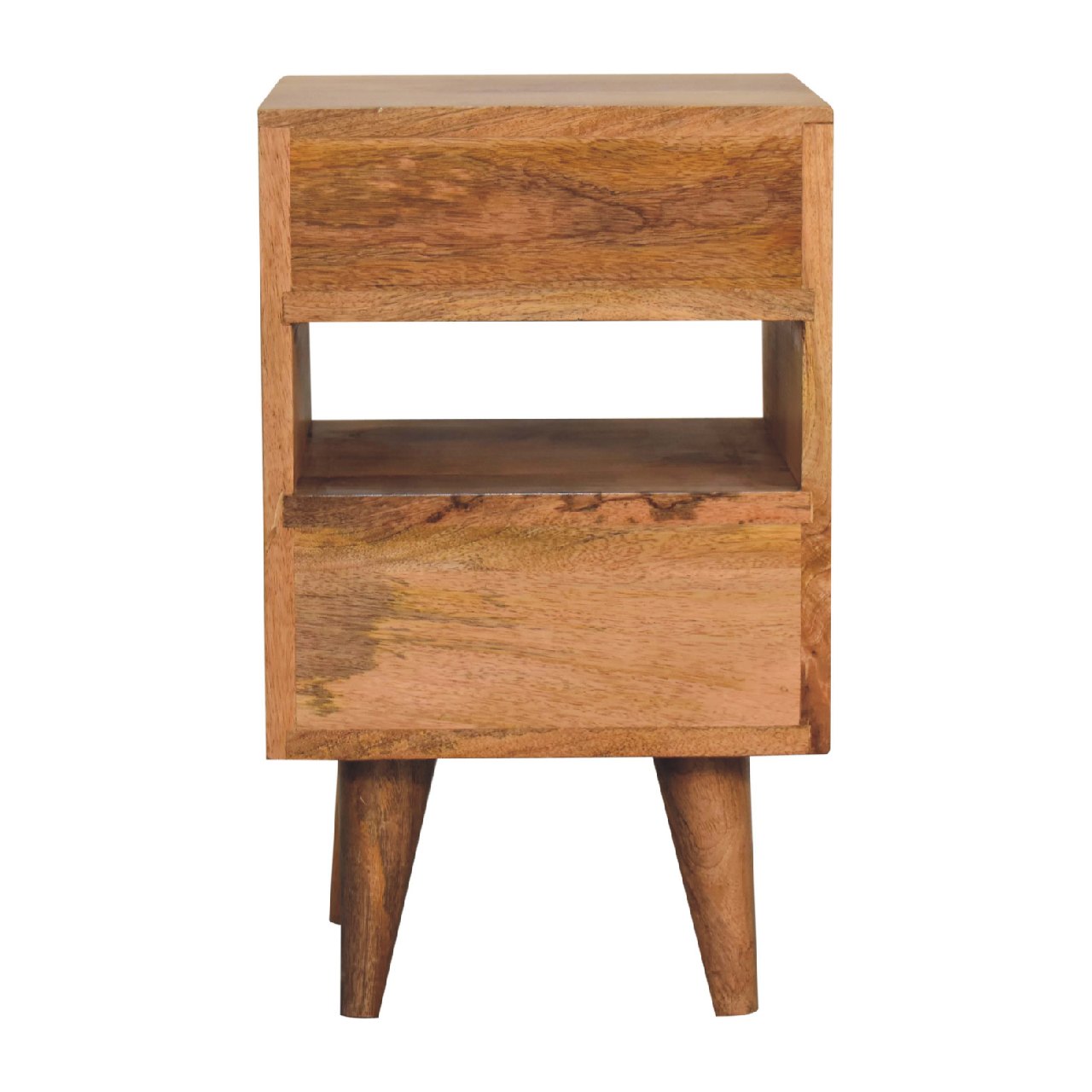 This mini white and grey gradient bedside has been constructed from 100% solid mango wood in an oak-ish finish and would be a perfect companion beside any bed, it stands on 4 Nordic-style legs and features 2 hand-painted grey and white handy drawers and 1 shelf in the middle. It can be partnered up with the other products from the range or stand-alone. A perfect addition to any home. This product is part of the Recession Collection. Height: 50 cm, Width: 30 cm, Depth: 30 cm Carton Height: 45.0 cm, Carton Width: 40.0 cm, Carton Depth: 40.0 cm