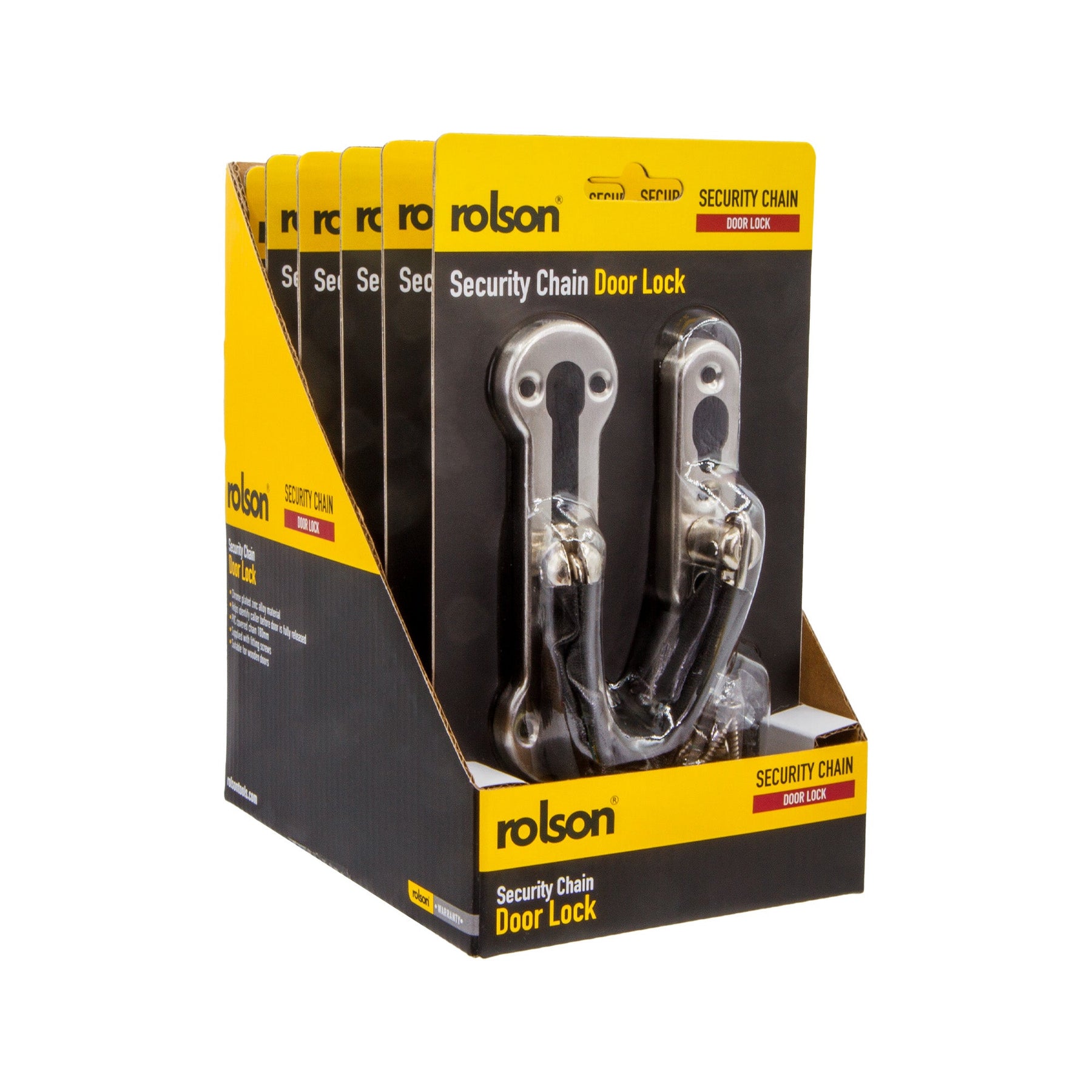 Security Chain Door Lock - Chrome plated zinc alloy material with 180mm PVC covered chain. Helps identify caller before door is fully released. Supplied with fitting screws