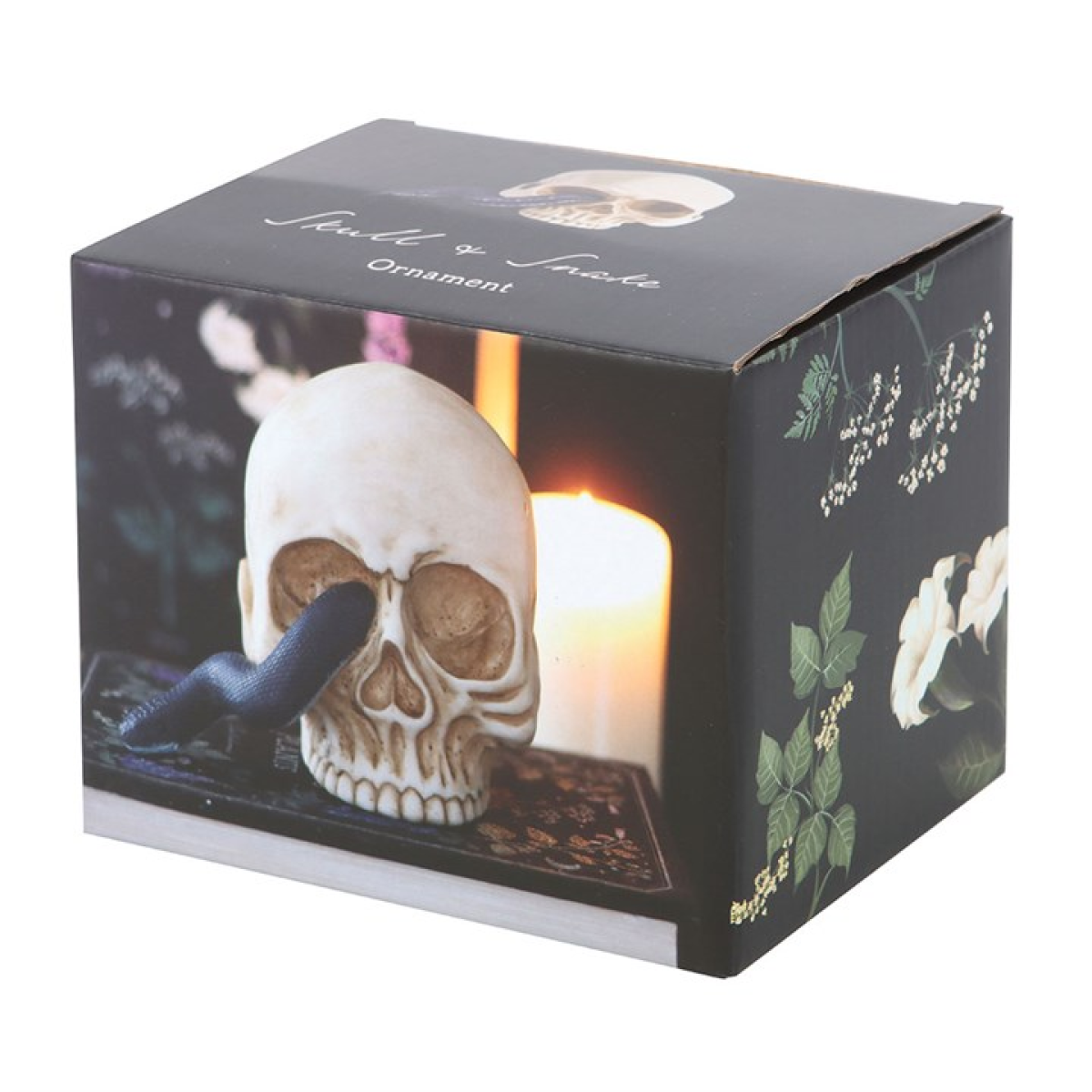 Add a hauntingly beautiful touch to the home with this skull-shaped ornament. Featuring a realistic, intricate skull design with a serpent weaving its way through the eye socket, creating a statement and dramatic presence in any space.