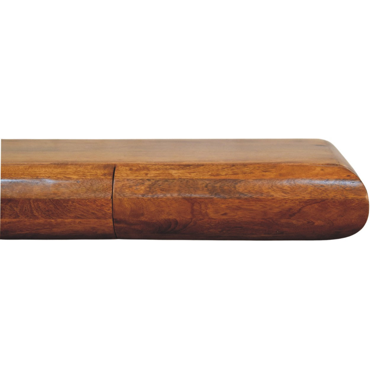The Solis Wall-Mounted Console is a masterpiece of sleek form and subtle luxury. Handcrafted from 100% solid mango wood in a glowing Amber Oak finish, it features a smooth curved-edge design with two hidden drawers that offer discreet storage. Its floating silhouette creates a modern, airy aesthetic that enhances both compact and spacious interiors. Perfect for hallways, living rooms, or bedrooms, the Solis Console combines functional elegance with refined minimalism a timeless addition to any contemporary home. Height: 12 cm, Width: 110 cm, Depth: 32 cm Carton Height: 22 cm, Carton Width: 120 cm, Carton Depth: 42 cm
