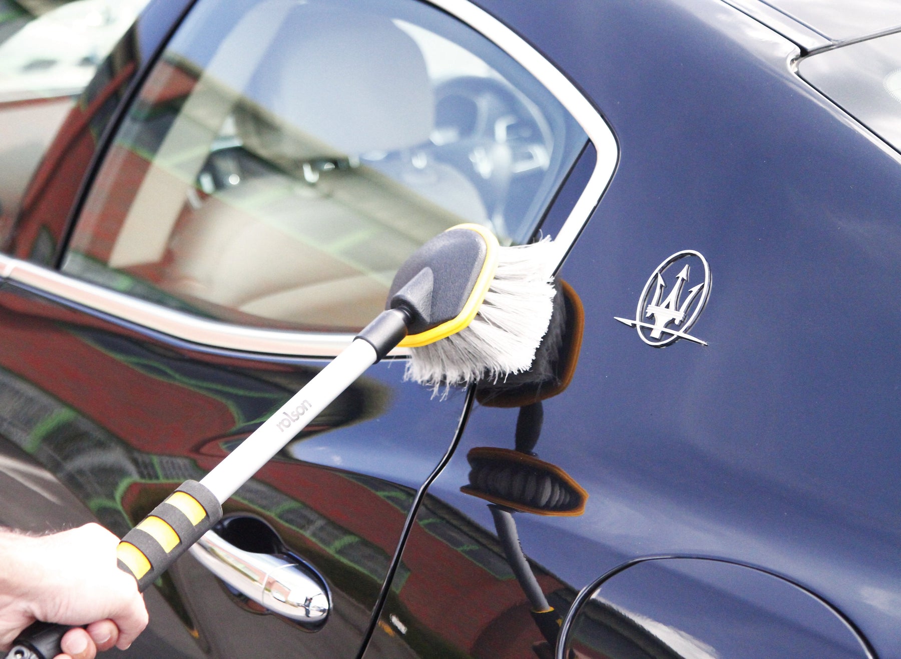 This all-purpose wash brush is ideal for cleaning cars, boats, caravans, trucks, vans, mobile homes, house conservatories and many other applications. The soft bristle head prevents scratching while the water feed helps remove dirt and debris. The unit itself is 530mm long with an adjustable head. It has a strong aluminium shaft and robust plastic head with on/off switch. It has a soft cushioned grip for added extra comfort and also insulates your hands from the cold water running through the handle. It comes with a quick release connection (this fits most standard hose connectors).