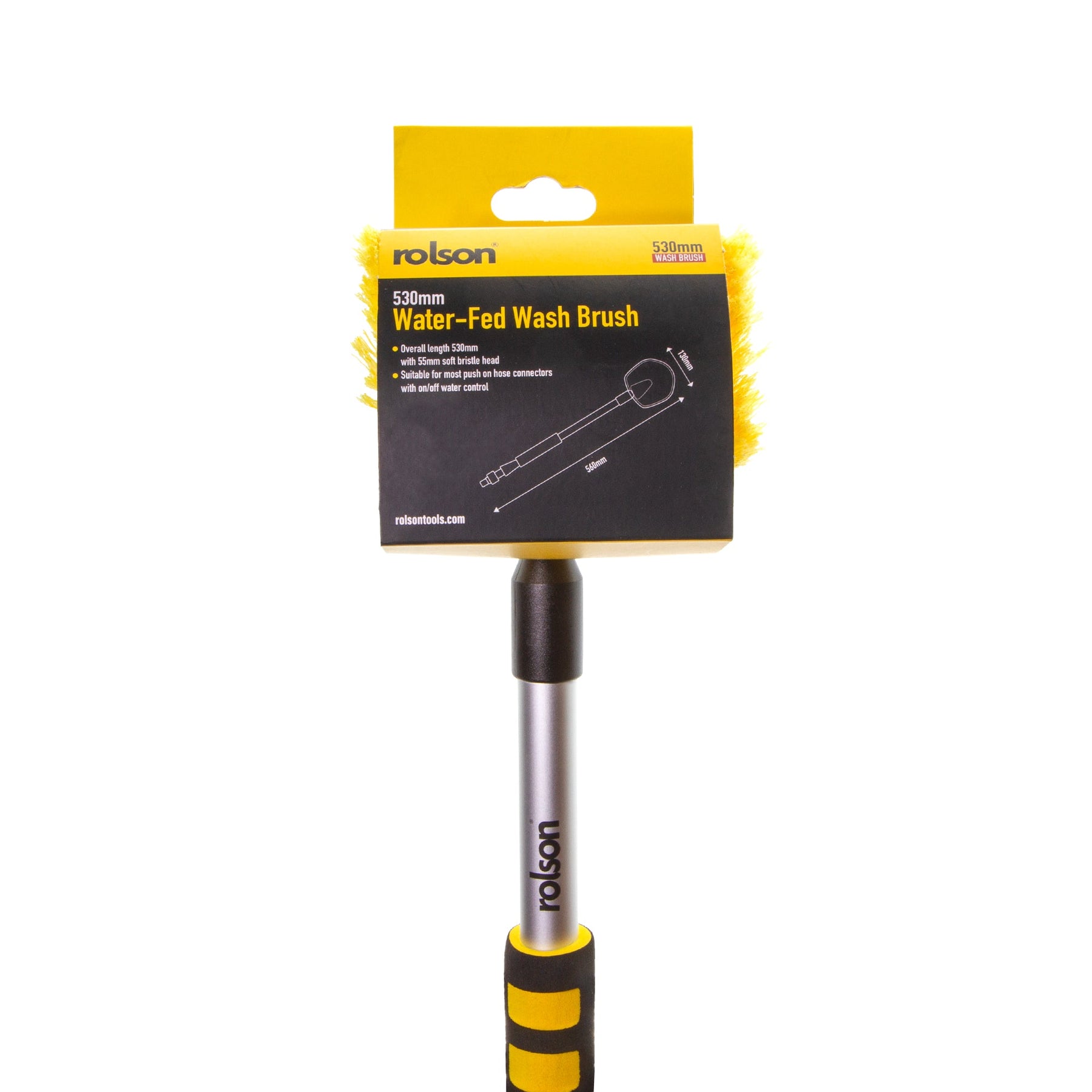Make light work of outdoor cleaning with the Water Fed Brush, your reliable partner for maintaining vehicles, boats, caravans, and more. Designed with soft bristles that safeguard surfaces from scratches, this brush combines gentle cleaning action with the power of water feed to shift stubborn dirt and grime effectively. Stretching to 530mm with an adjustable head, it gives you the flexibility to reach different angles and areas with ease. The robust aluminium pole and durable plastic construction provide the strength you need for long-lasting performance. An intuitive on/off switch puts water control in your hands, whilst the padded grip ensures comfort and thermal protection during extended use. The quick-release connector attaches seamlessly to standard hose fittings, eliminating fuss during setup. When you're finished, simply detach the head for convenient storage. Whether you're refreshing your car's shine or tackling conservatory walls, this versatile brush delivers the support you need for professional-quality results.